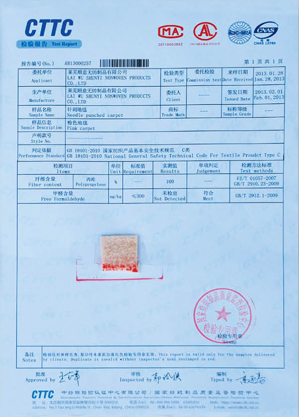 阻燃地毯檢測(cè)合格