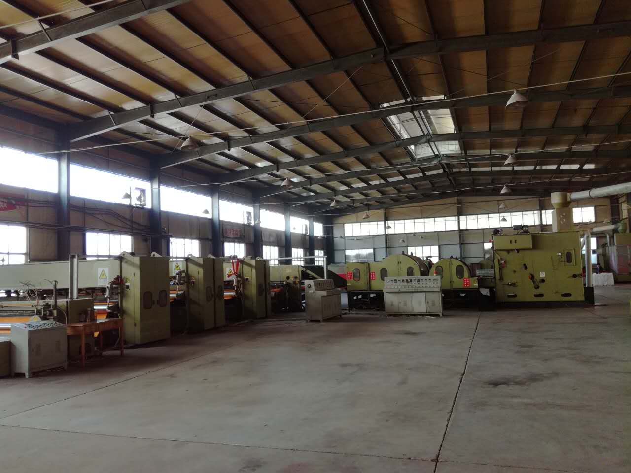 公司總投資1億余元,首期工程已完成投資3000萬元。現(xiàn)已建設(shè)標(biāo)準(zhǔn)廠房15000余平方米、引進(jìn)多條無紡布生產(chǎn)線。其中,針刺無紡線4條、起絨機(jī)兩臺(tái)、電腦提花機(jī)1臺(tái)、條紋機(jī)1臺(tái)、地毯整理烘干定型線兩套。